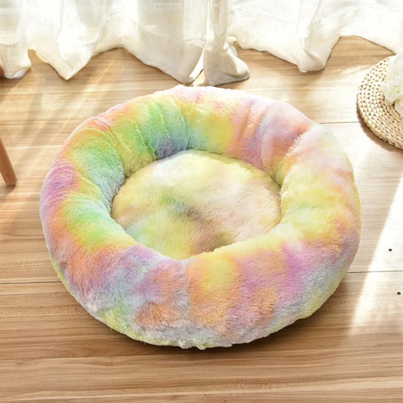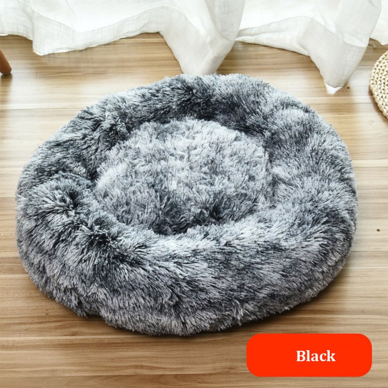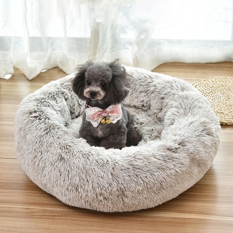 Pet Dog Cat Calming Bed Round Warm Soft Plush Sleeping Bed Donut Cushion
