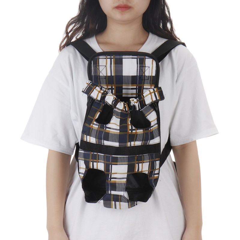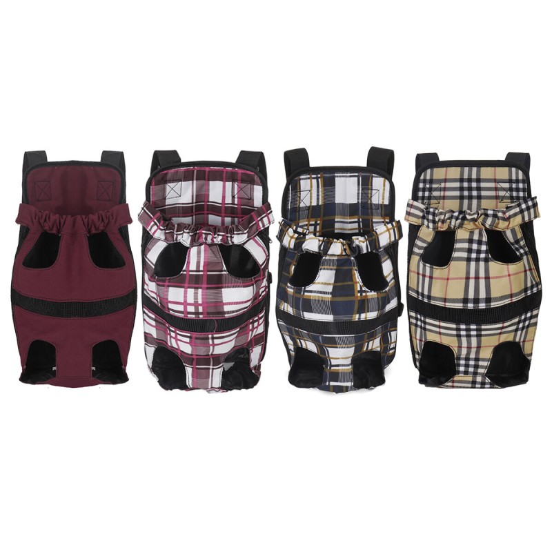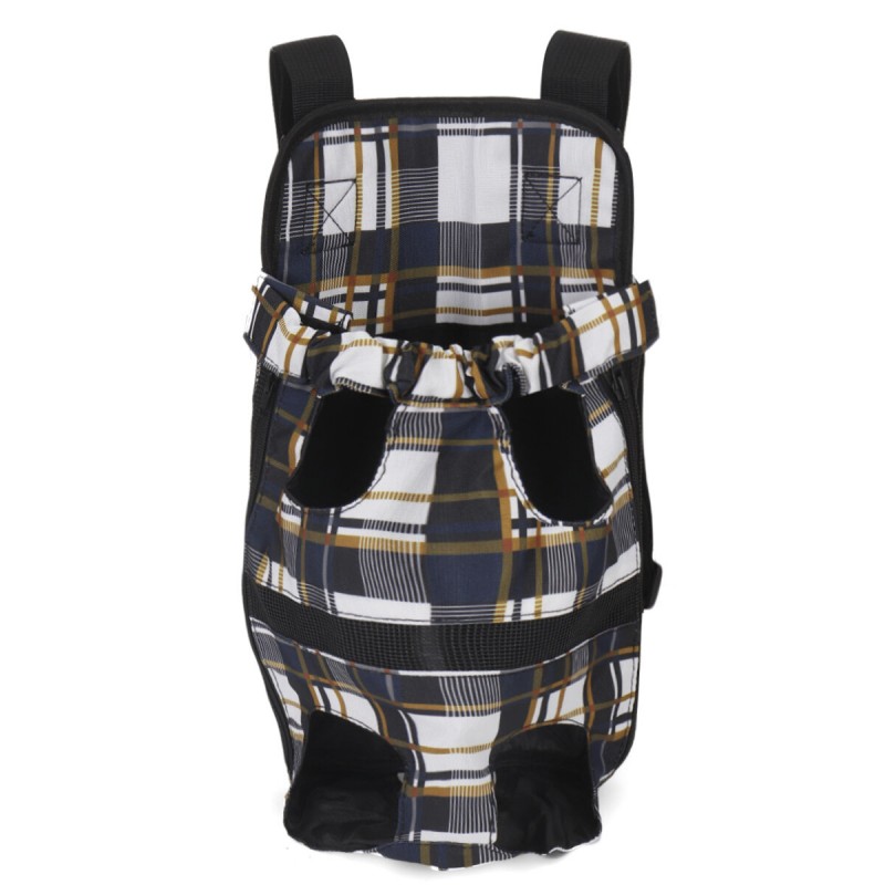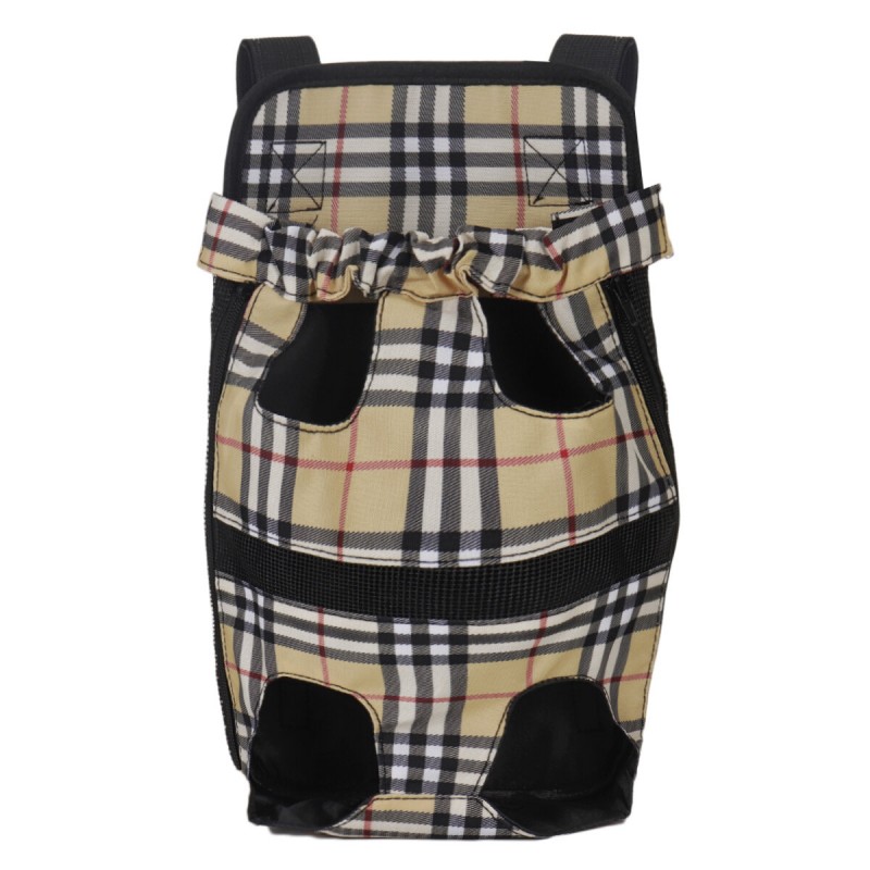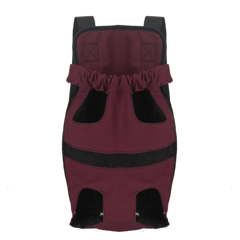 - Open top pet pouch carrier with legs out design.