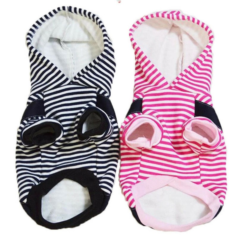 Pet Dog Winter Cotton Clothes Warm Soft Straps Stripe Color Hoodie Coat With Hat In All Size