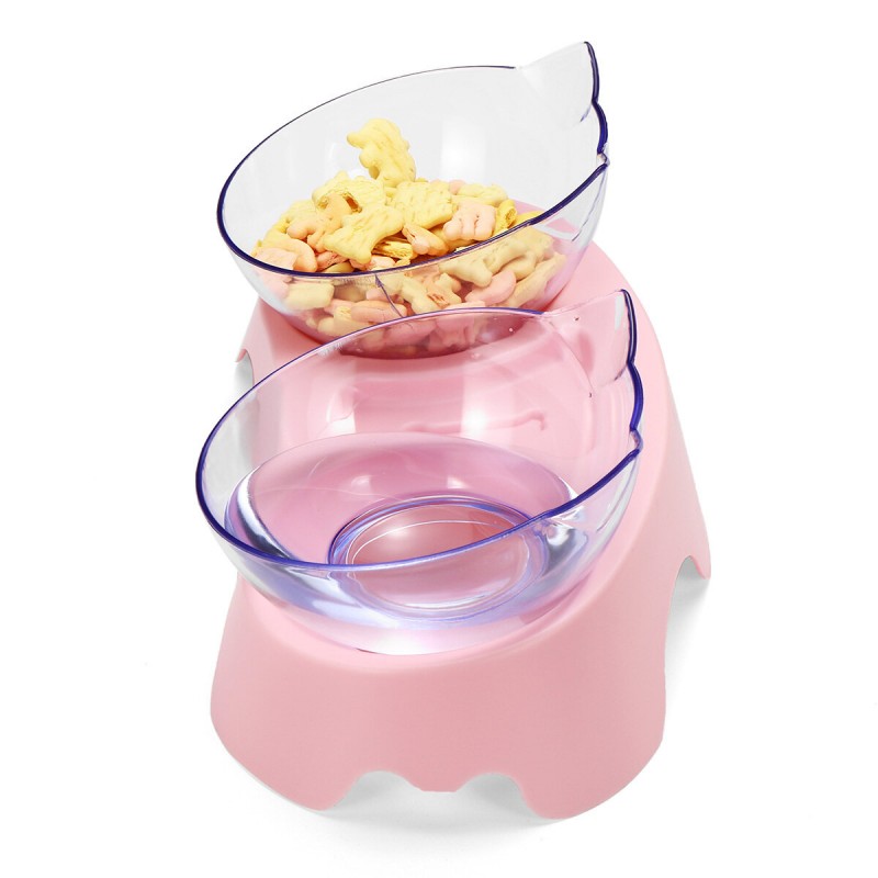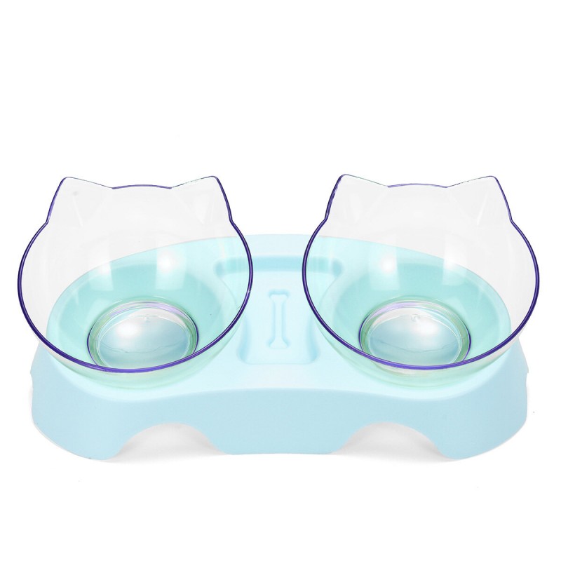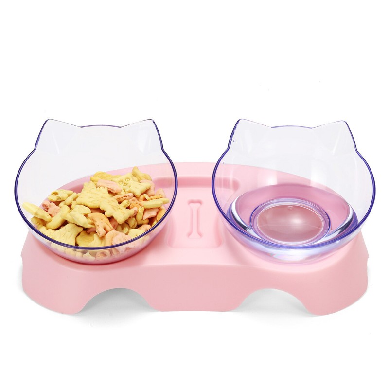 - Double bowl design, healthy diet. A set of tableware can provide water and food for the cat at the same time .