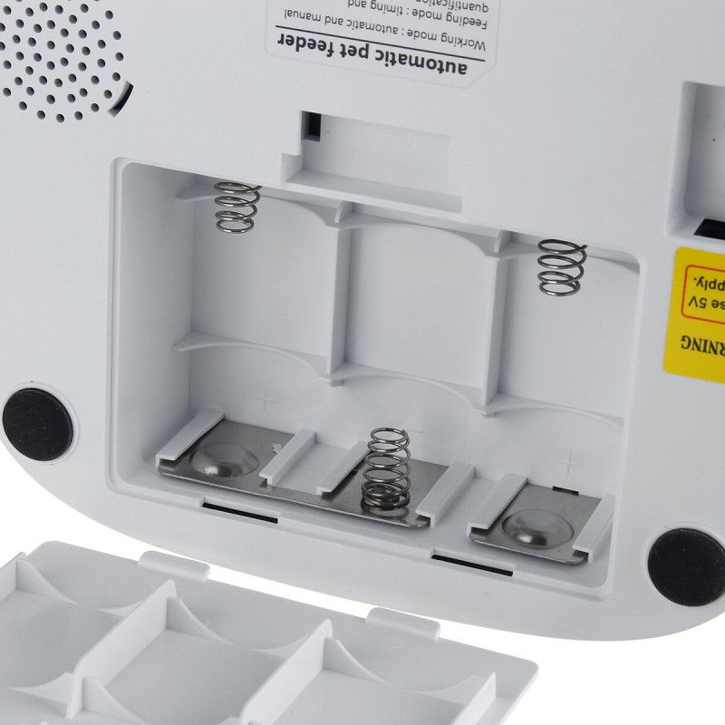 5. Easy to Clean & Quality Food Material & Dual Power Mode: Detachable pet feeder is convenient to take apart and clean. The pet cat dog feeder is made of food-grade ABS material, it is environmentally friendly and durable. The dog feeder can be powered by wall power or 3 D-size batteries( not included).