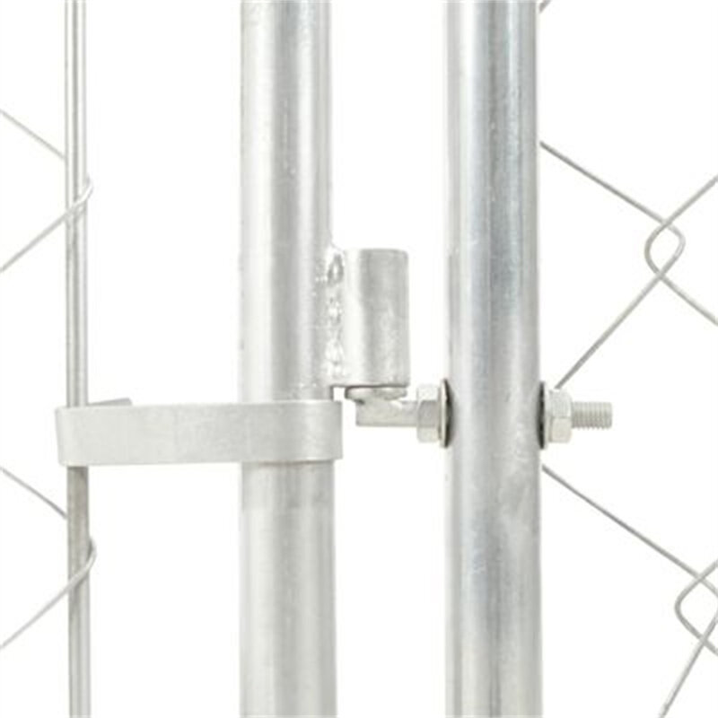 This large dog kennel provides ample exercise space while the chain link mesh all around helps prevent mischief and unexpected accidents while enabling ventilation. Thanks to the sturdy and heavy-duty galvanised steel construction, this quality dog kennel is durable and built to last. Made of 100% polyethylene, the included top canopy is fire-resistant and UV protected, providing protection from sun, rain, snow, as well as other weather conditions. The hinged door with lockable latch system ensures extra security and safety for your dogs. The kennel is easy to assemble. Please note that the door can be installed on the left or right side, which depends on your own needs.