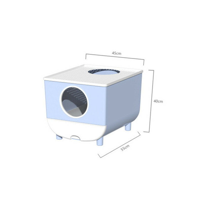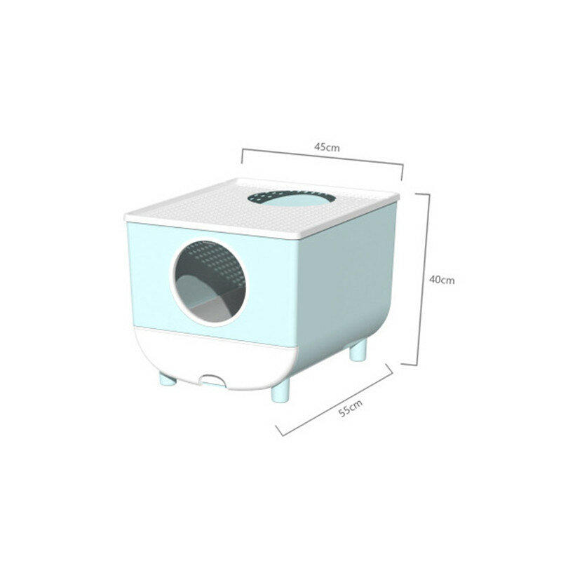The door of the litter box is a one-way design. After the cat enters, it cannot come out through the door. It can only come out from the top. The lid on the top has many small holes. The litter carried by the cat falls back into the litter box.