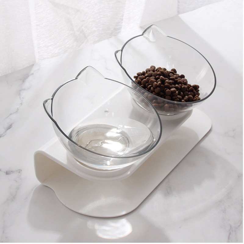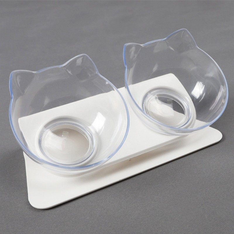 Cat Elevated Bowl Raised The Bottom Transparent Puppy Bowl With Holder Anti-slip Single/Double Feeders Protect Pet Spine for Cat