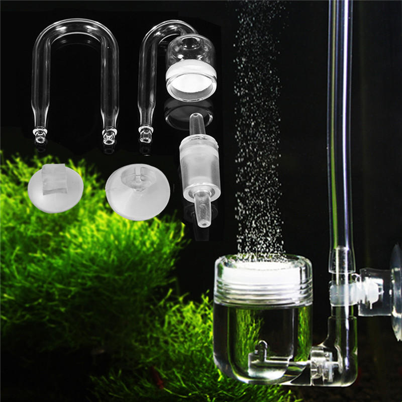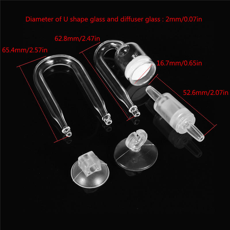Fish CO2 Diffuser Check Valve U Shape Glass Tube Suction Cup Kit Tank