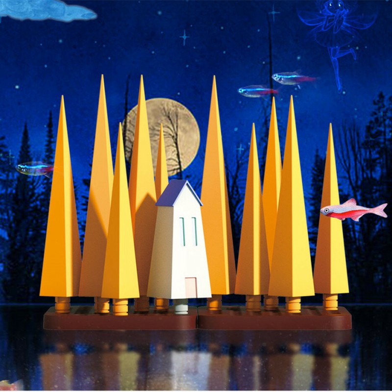 | Product size(mm) | Large tree*3: 25mmx25mmx165mm Medium tree*3: 22mmx22mmx150mm Small tree*4: 18mmx18mmx130mm Bottom bracket*2: 100mmx100mmx8mm Forest Cabin*1: 25mmx25mmx115mm |